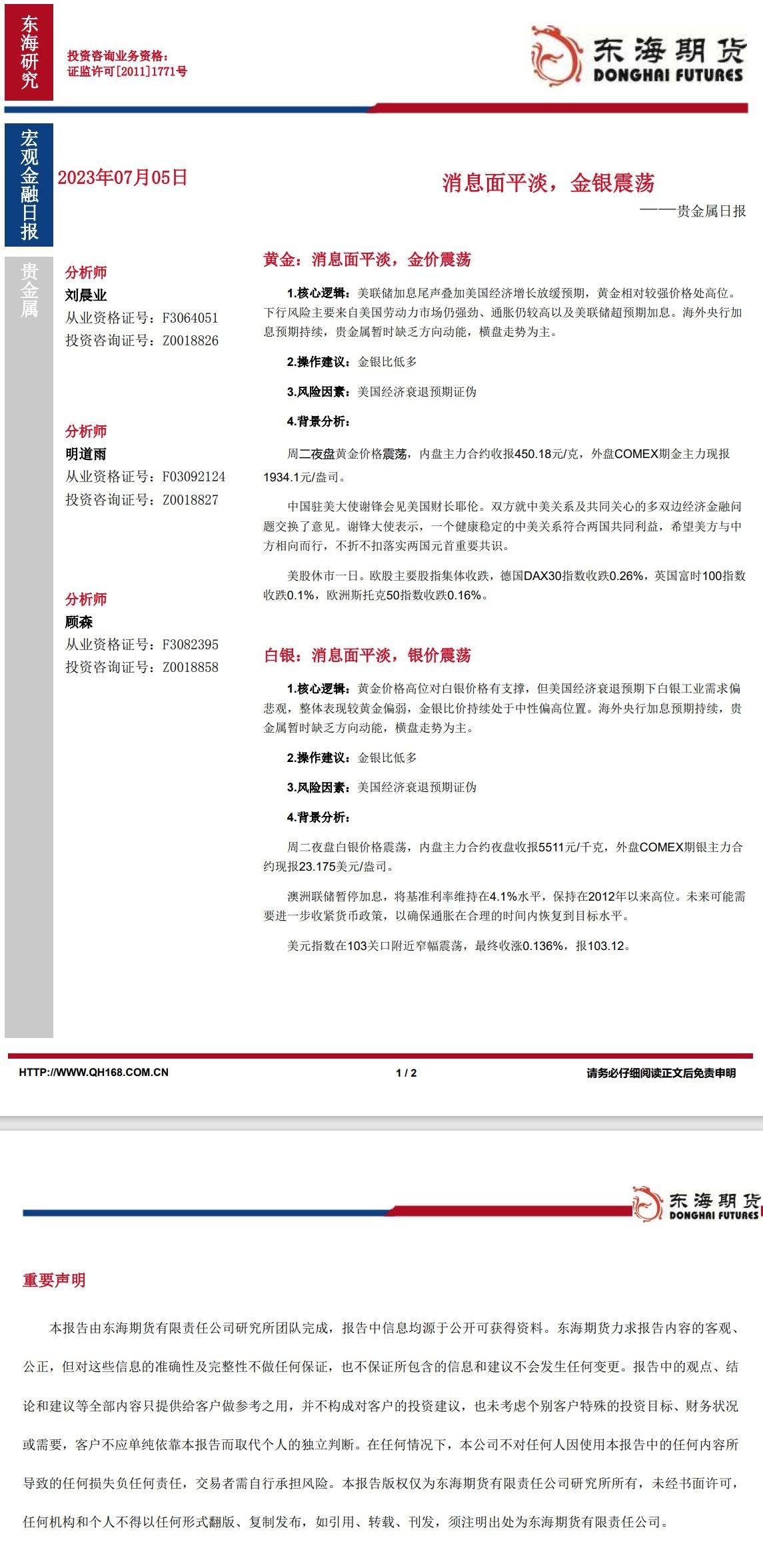 中信建投期货7月5日贵金属早报:海外市场休市 贵金属窄幅波动