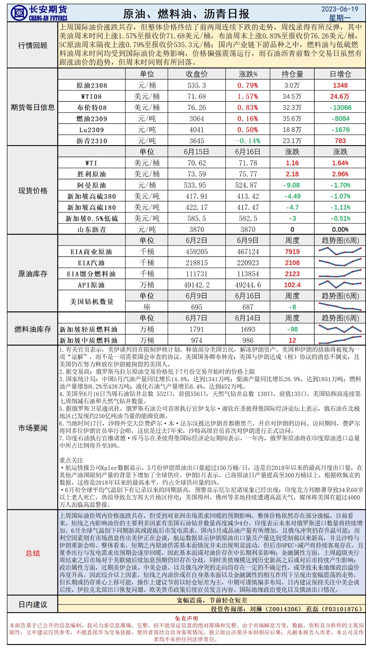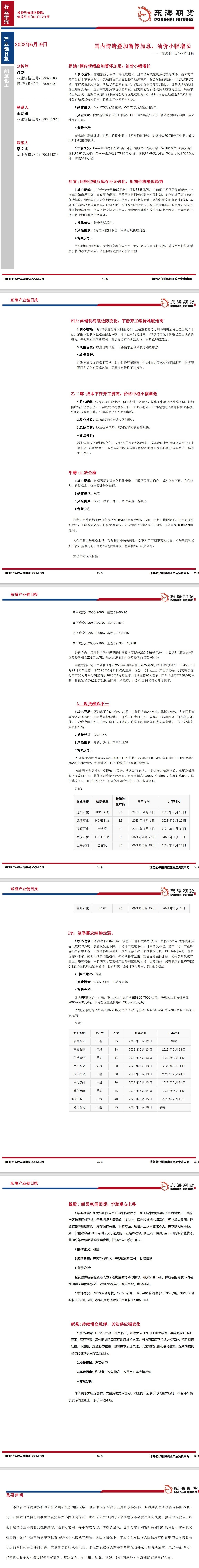 【东海期货6月19日产业链日报】能化篇:国内情绪叠加暂停加息,油价小幅增长