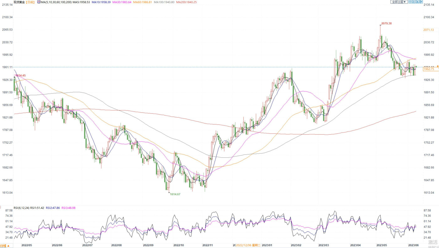 汇通财经APP讯——周五(6月9日),国际金价基本持稳。隔夜金价大涨逾1%,使得周线有望收涨,因美联储暂停加息预期导致美元指数大跌逾0.75%,周五触及5月23日以来新低至103.293。金价短线上看...