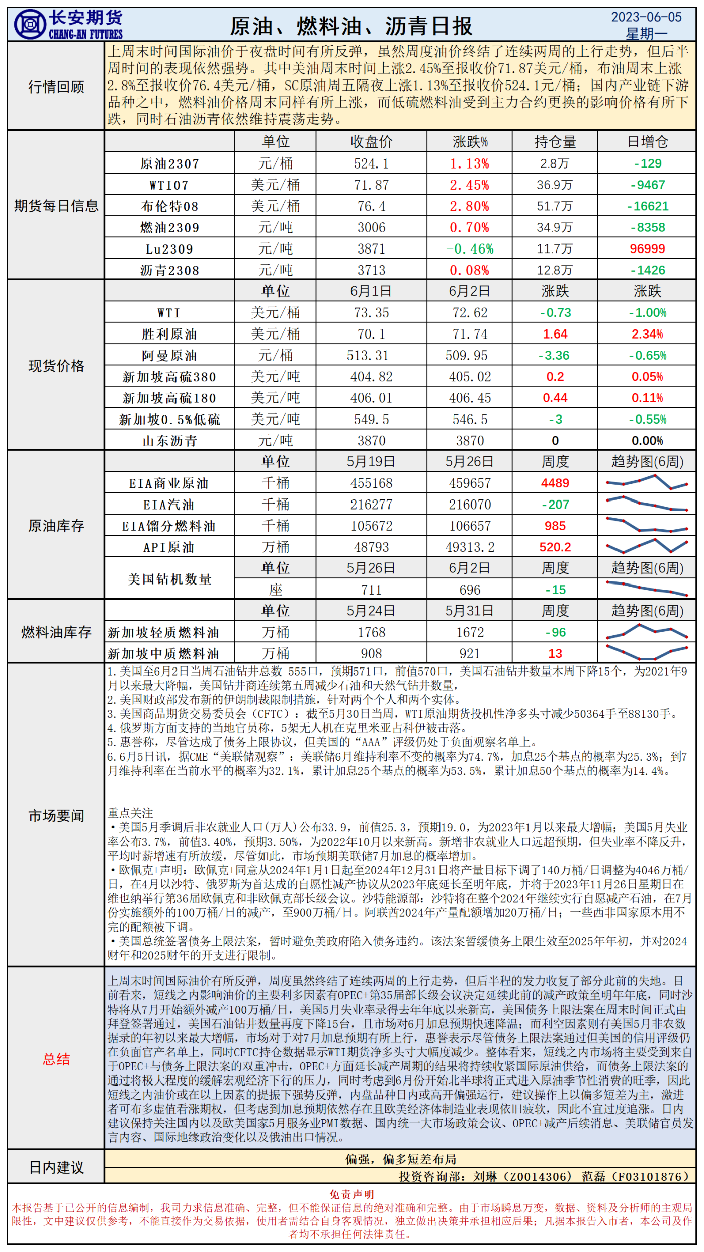 中辉期货原油日报20230606:原油上冲动力不足,建议观望