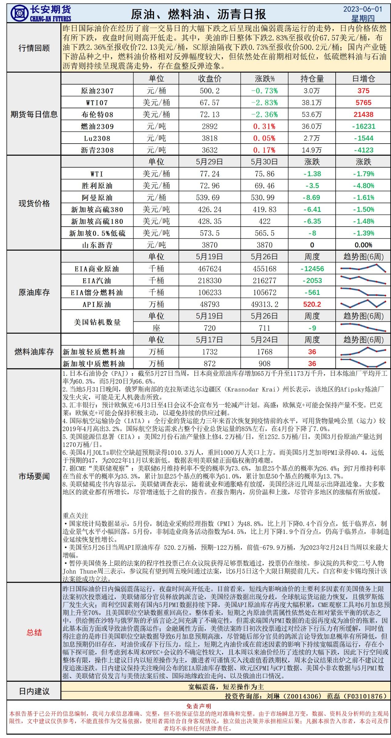 长安期货6月1日原油早评:美债法案通过投票,加息预期高涨压制油价