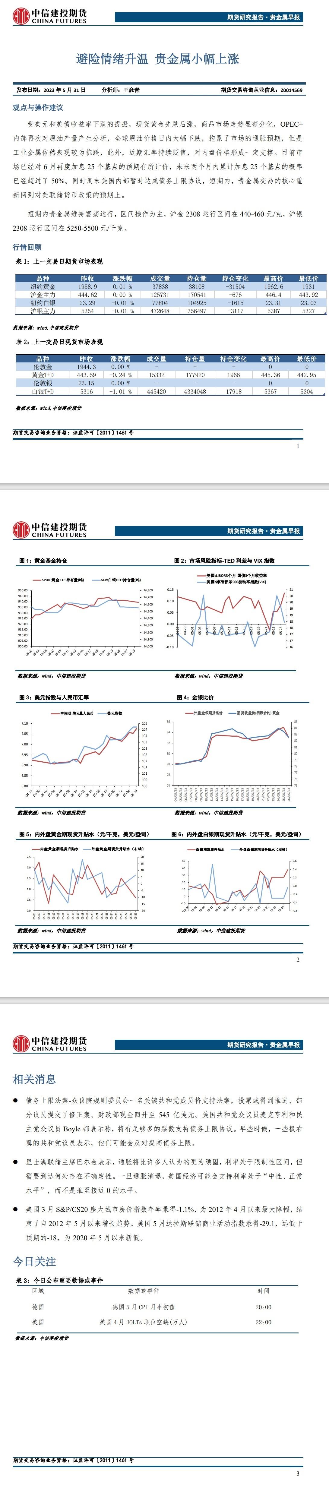 中信建投期货6月1日贵金属早报:避险情绪升温 贵金属小幅上涨
