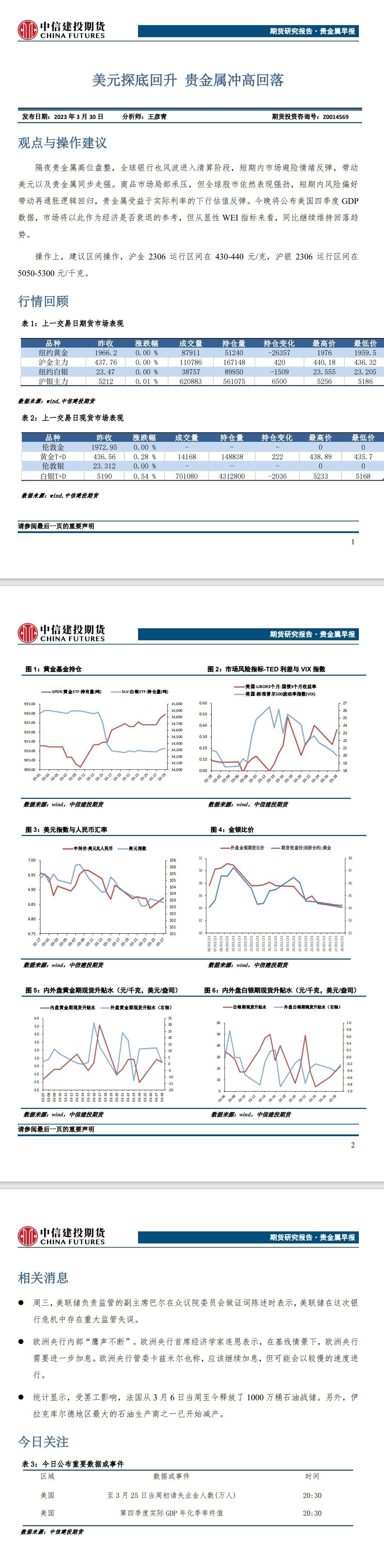 标题:中信建投期货3月30日贵金属报告:美元探底回升 贵金属冲高回落