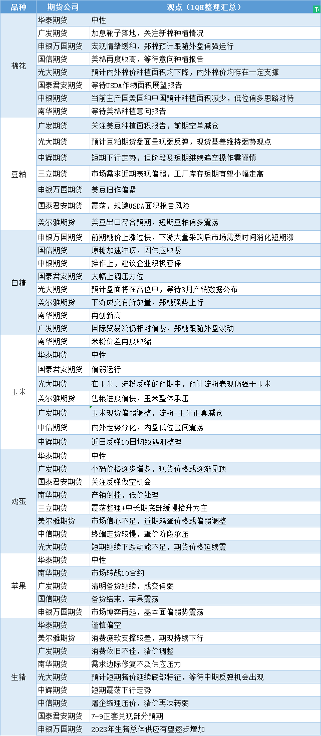 汇通财经APP讯——期货公司观点汇总一张图:3月31日农产品(棉花、豆粕、白糖、玉米、鸡蛋、生猪等)