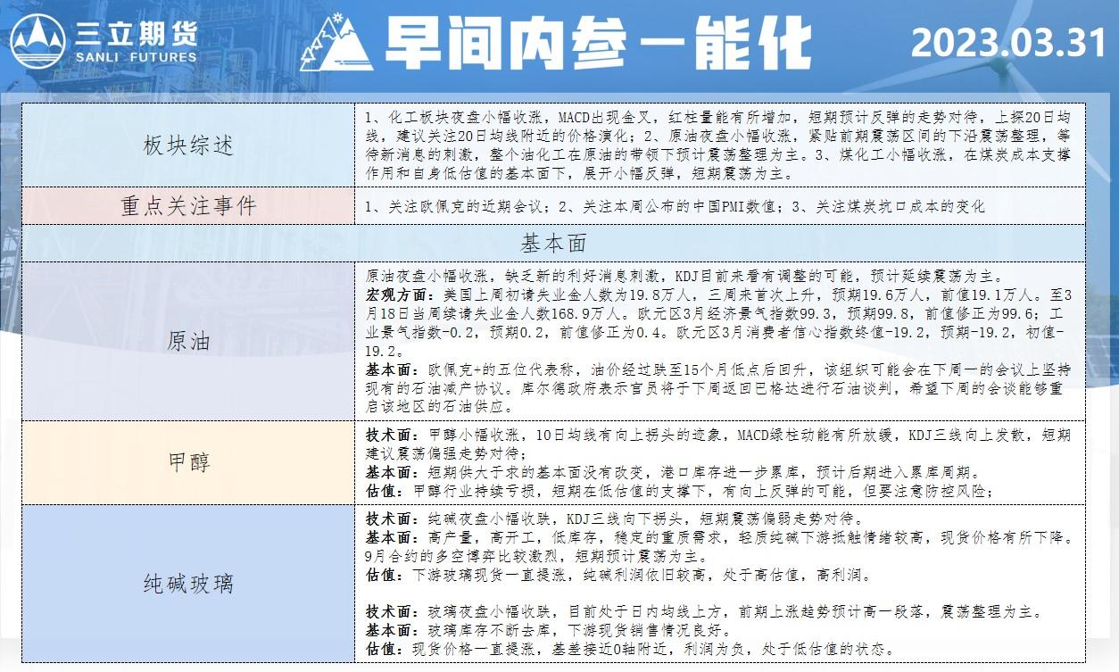 标题:三立期货3月31日早间内参——能化