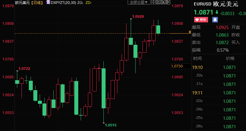 欧元兑美元上涨逾1%。欧元区3月核心通胀高于前值,增强了欧洲央行的升息压力,并提振了欧元。欧洲央行已明确表示,未来加息将取决于经济数据。