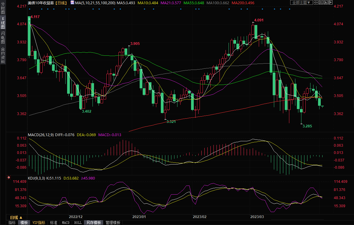 常与利率预期同步的两年期美债收益率收益率周一下降8.8个基点,至3.974%;10年期美债收益率周一下跌6.6个基点,至3.425%。