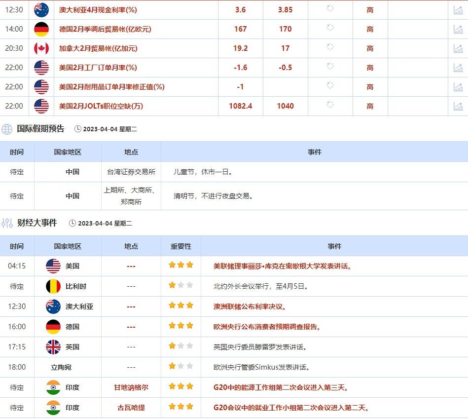 周一澳元兑美元稍早触及一个月高位0.6792,最后收涨1.50%,报0.6784。周二澳洲联储将召开政策会议。市场认为该央行在加息10次后保持利率不变的可能性为85%。