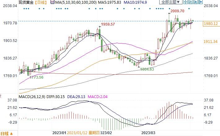 北京时间4月4日13:26,现货黄金报1980.12美元/盎司