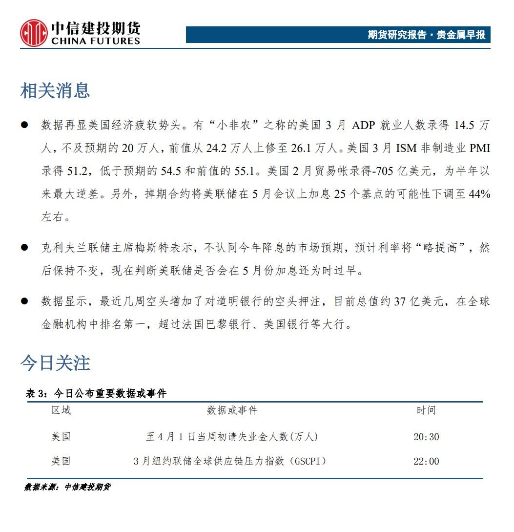 标题:中信建投期货4月6日贵金属早报:经济前景疲软 贵金属后市偏向强势