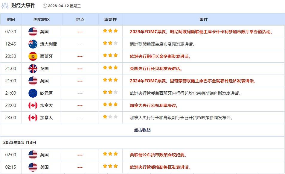周三(4月12日)关键词:美国CPI、美联储会议纪要、加拿大央行利率决议