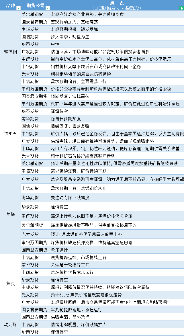 汇通财经APP讯——期货公司观点汇总一张图:5月29日黑色系(螺纹钢、焦煤、焦炭、铁矿石、动力煤等)
