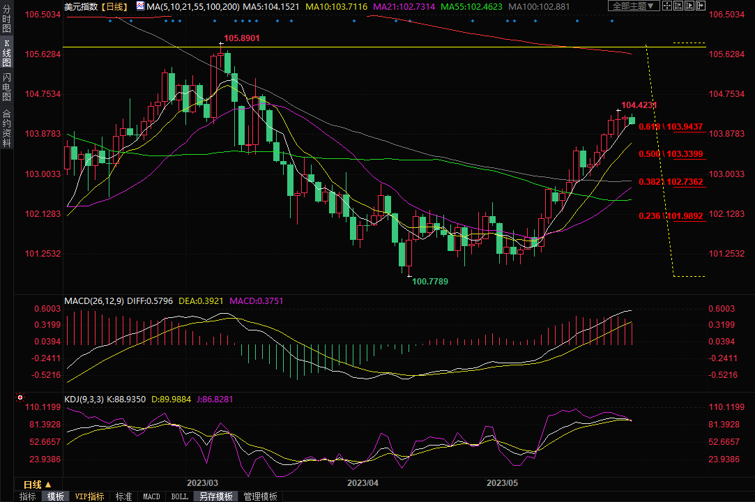 美元周二小幅下跌,美国债务上限协议提振了全球市场的风险偏好,削弱了美元的避险吸引力。目前