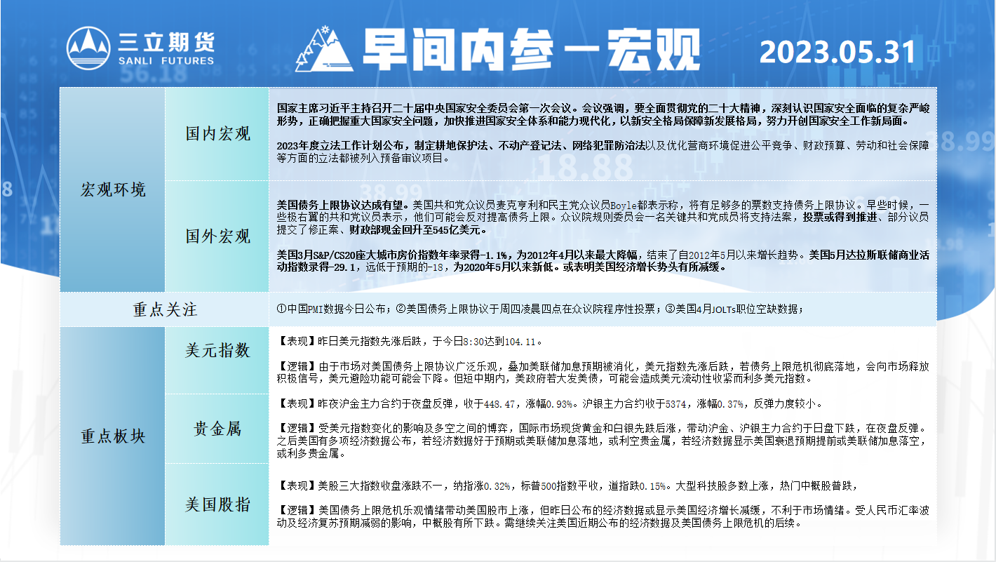 汇通财经APP讯——三立期货早间内参显示,由于市场对美国债务上限协议广泛乐观,叠加美联储加息预期被消化,美元指数先涨后跌,若债务上限危机彻底落地,会向市场释放识极信号,美元避险功能可能会下降。但短中期内,美政府若大发美债,可能会造成美元流动性收坚而利多美元指数。