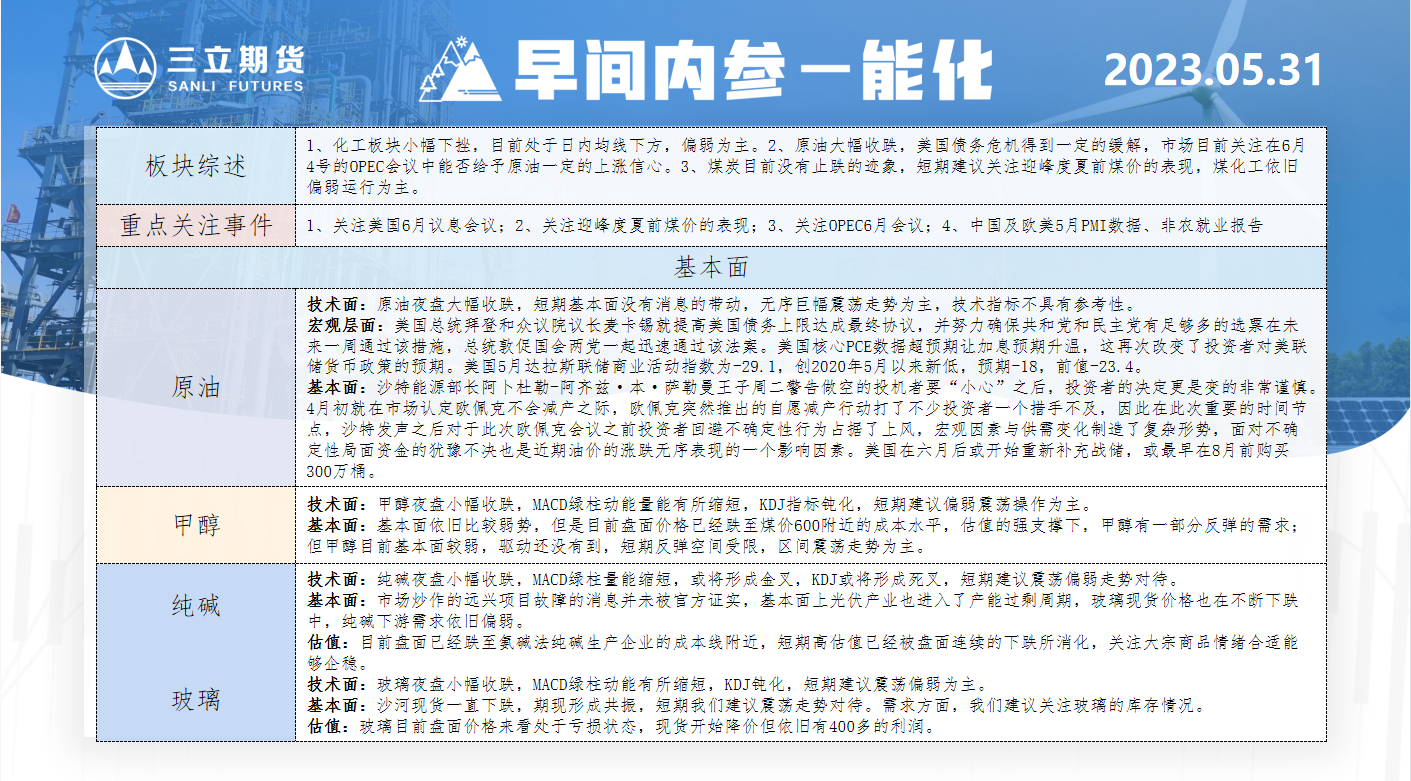 标题:三立期货5月31日早间内参——能化
