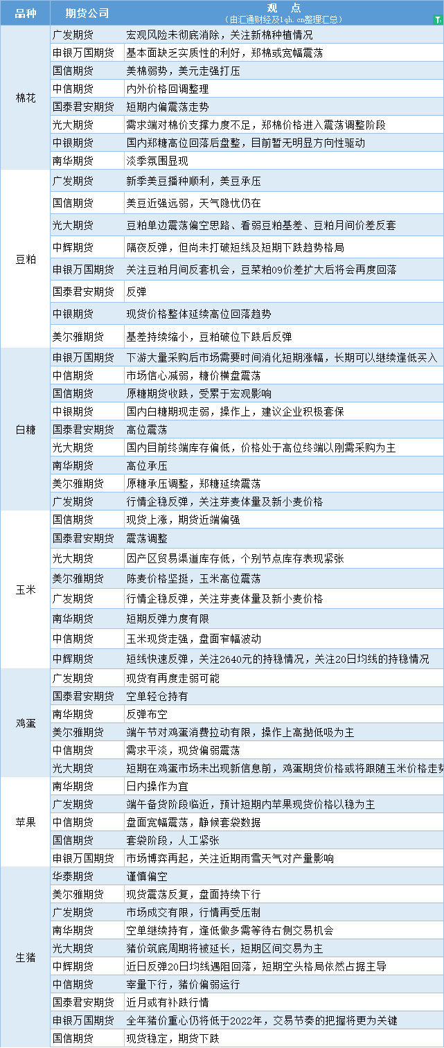 汇通财经APP讯——期货公司观点汇总一张图:6月1日农产品(棉花、豆粕、白糖、玉米、鸡蛋、生猪等)
