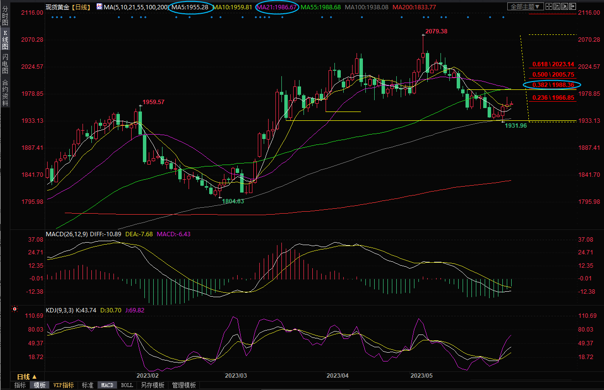目前来看,短线看涨信号有所增强,金价短线有望延续反弹走势,若能顶破55日均线1988.66附近阻力,则有望启动新一轮涨势。
