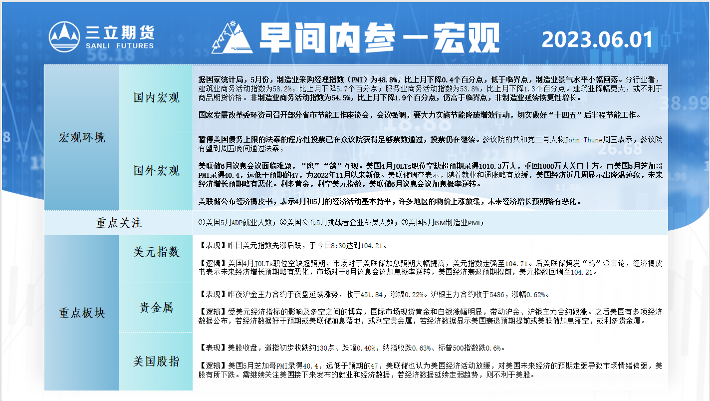 标题:三立期货6月1日早间内参——宏观