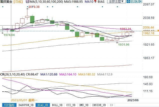 北京时间6月2日11:54,现货黄金报1982.50美元/盎司