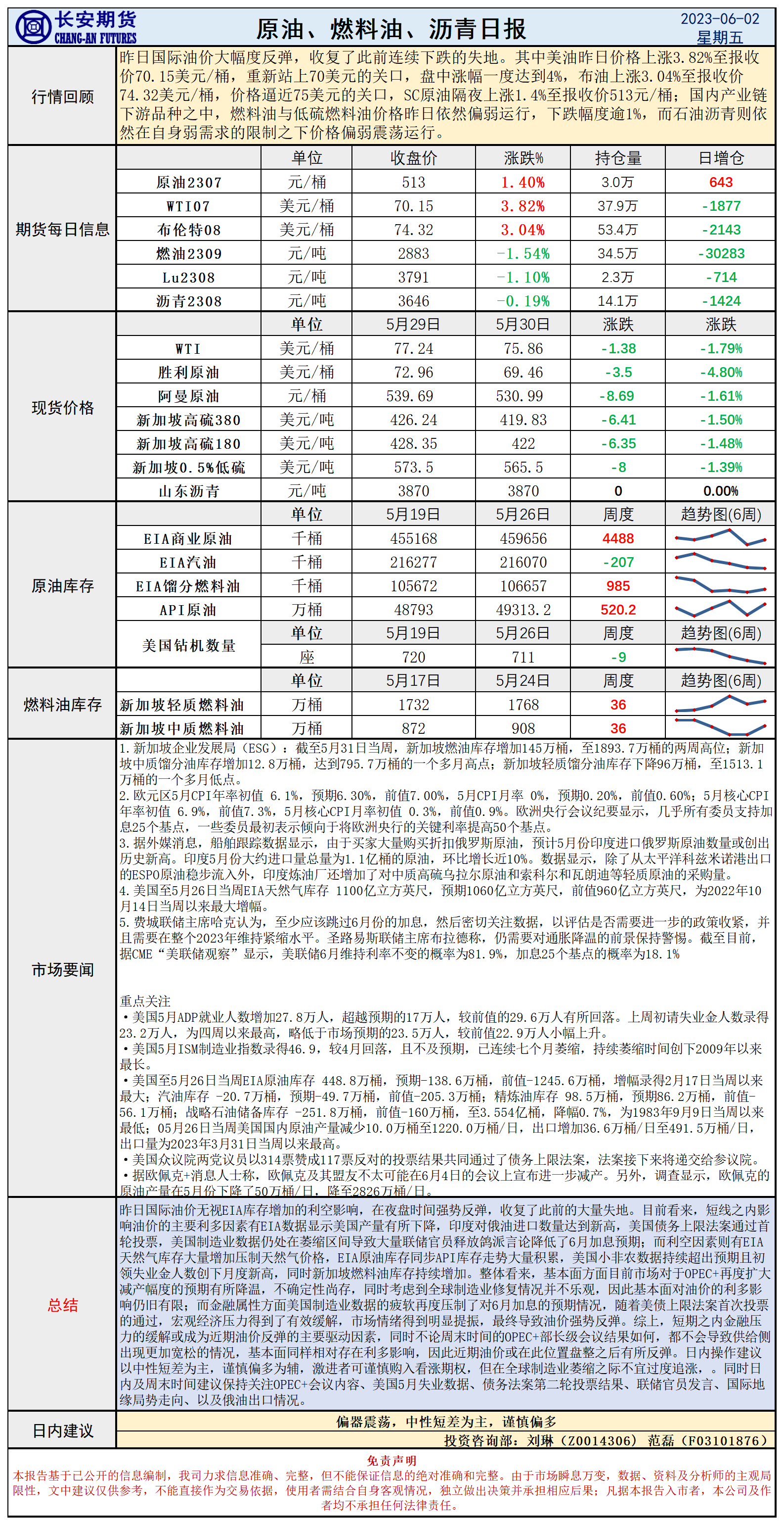 标题:长安期货6月2日原油日报:加息预期骤减油价无视库存积累,OPEC+会议或左右后市风向