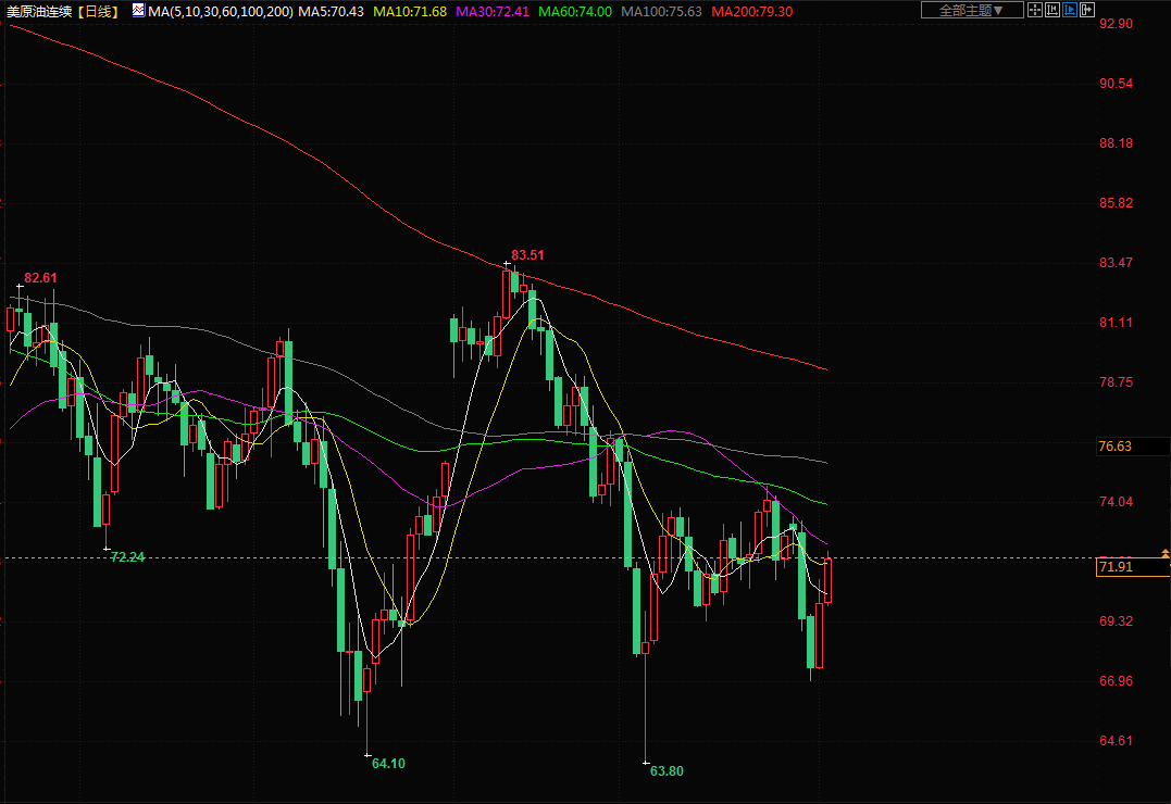 商品收盘情况:美国期金收高1.3%,报1969.6美元。布伦特原油期货上涨2.5%,报收于每桶76.13美元,而美原油上涨2.3%,报收于71.74美元。