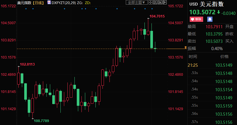 最近多位美联储官员出面表态,支持在6月13-14日政策会议上“跳过”一次加息。市场对加息概率的押注旋即迅速降温,从本周稍早的近70%降至30%左右。美元指数有望时隔三周后重新收低,目前跌约0.5%。