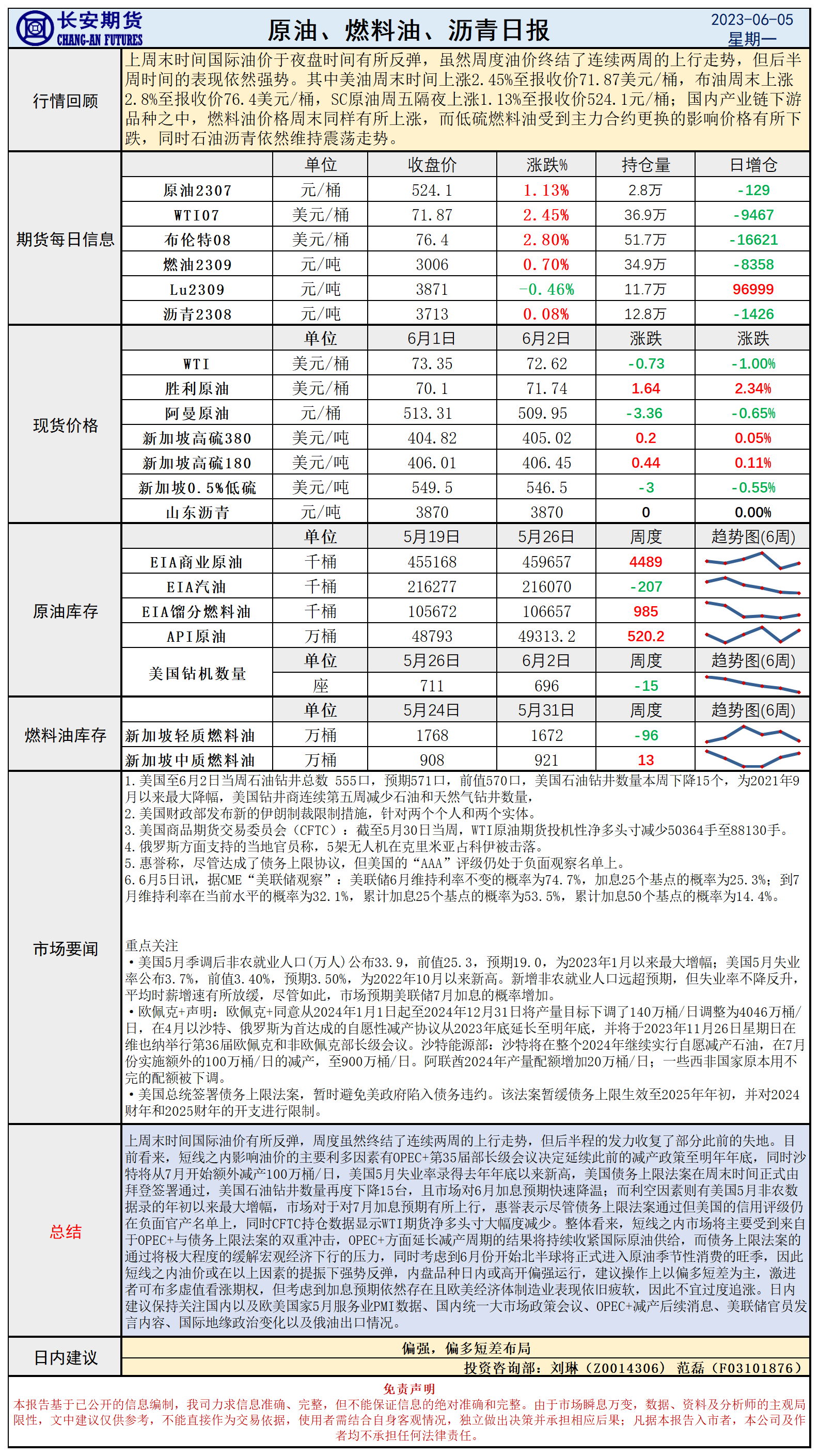 标题:长安期货6月5日原油日报:OPEC+减产延续美债法案通过,油价筑底反弹或持续偏强运行