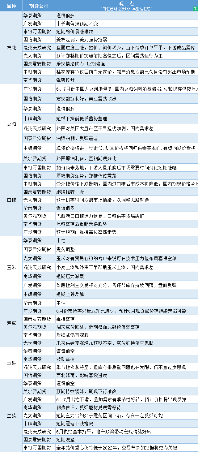 汇通财经APP讯——期货公司观点汇总一张图:6月5日农产品(棉花、豆粕、白糖、玉米、鸡蛋、生猪等)