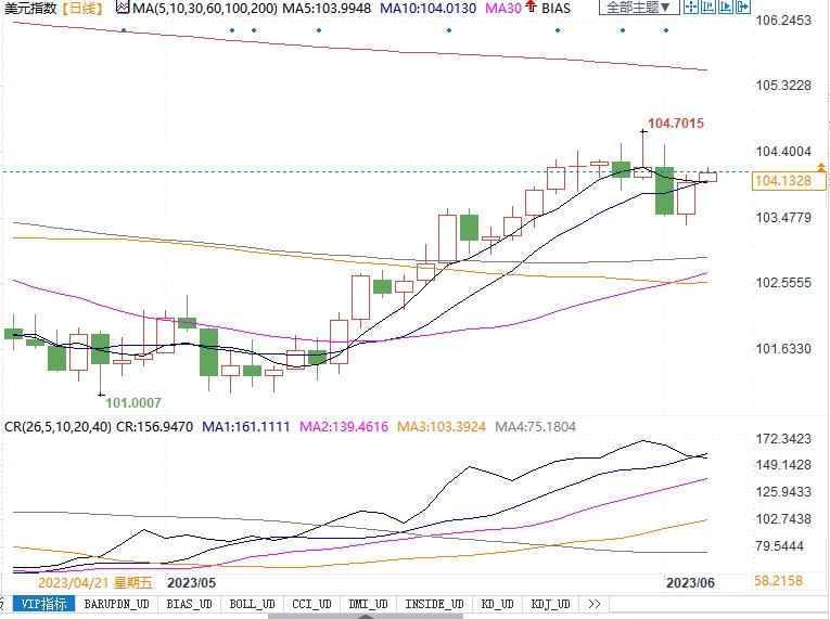 北京时间6月5日10:52,美元指数报104.13