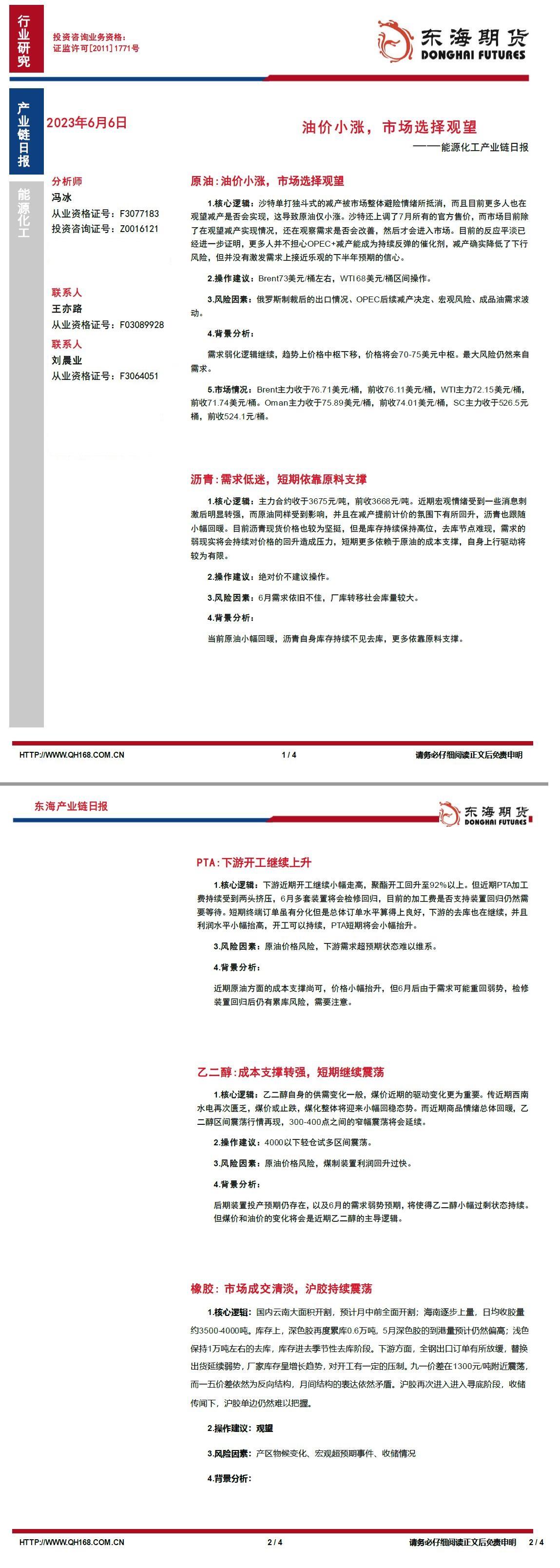 标题:【东海期货6月6日产业链日报】能化篇:油价小涨,市场选择观望