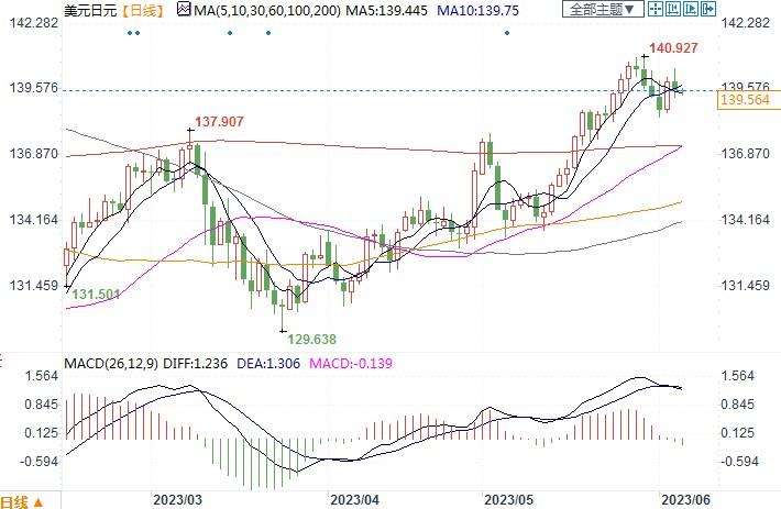 北京时间6月6日10:44,美元兑日元报139.58/59
