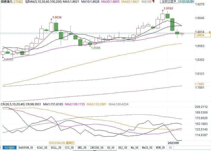 北京时间6月6日10:36,英镑兑澳元报1.8804/08