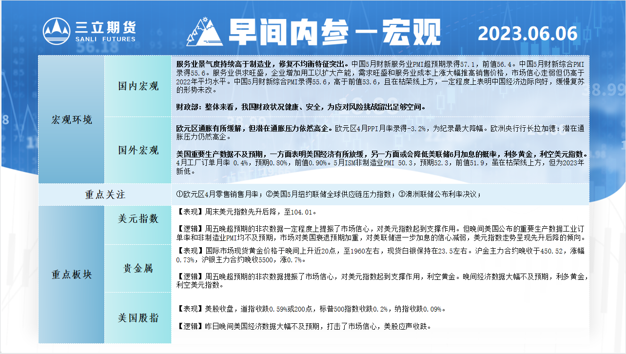 标题:三立期货6月6日早间内参——宏观