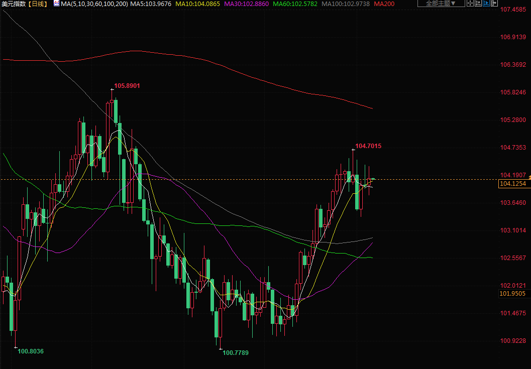 美元指数上涨0.12%,报104.11。