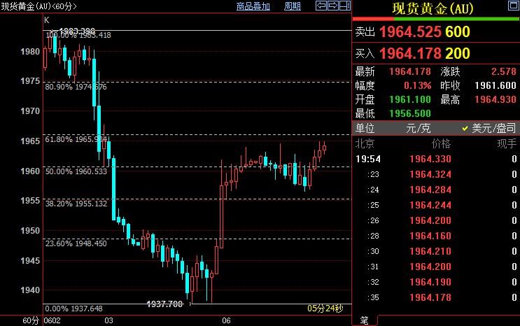 北京时间20:14,现货黄金上浮0.14%至1964.52美元/盎司;COMEX期金主力合约上涨0.33%至1980.9美元/盎司;美元指数上涨0.22%至104.245;欧元兑没有换下跌0.32%至1.0677。