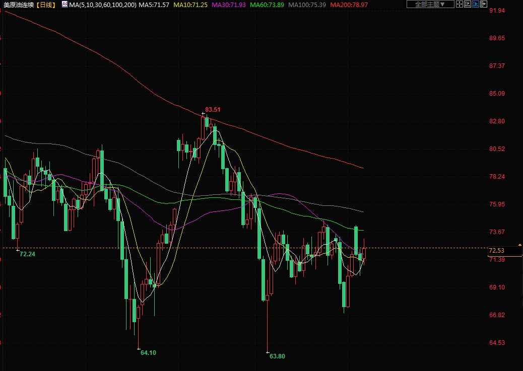 商品收盘情况:美国期金收跌1.2%,报每盎司1958.40美元。布伦特原油期货收高0.9%,结算价报每桶76.95美元,美国原油期货上涨1.1%,报72.53美元。