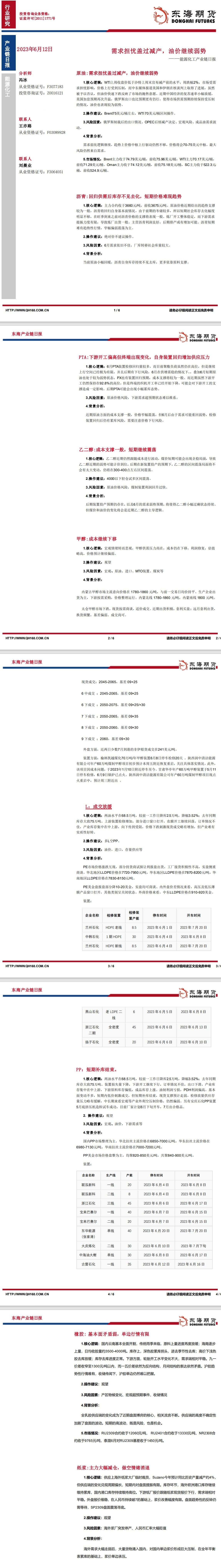 标题:【东海期货6月12日产业链日报】能化篇:需求担忧盖过减产,油价继续弱势