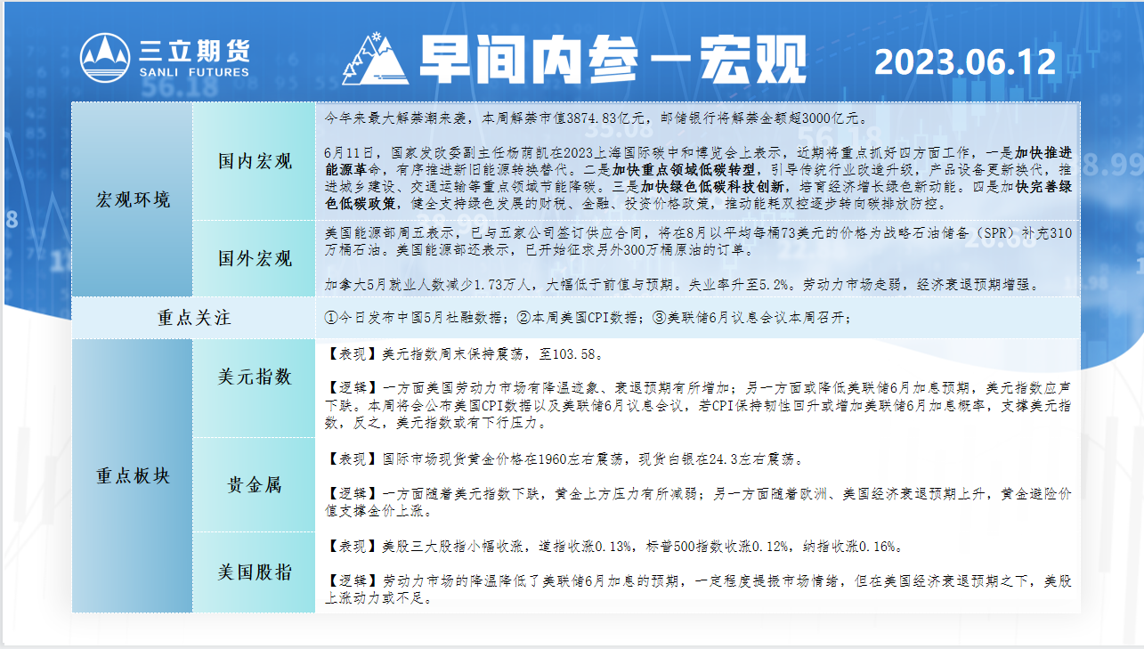 标题:三立期货6月12日早间内参——宏观