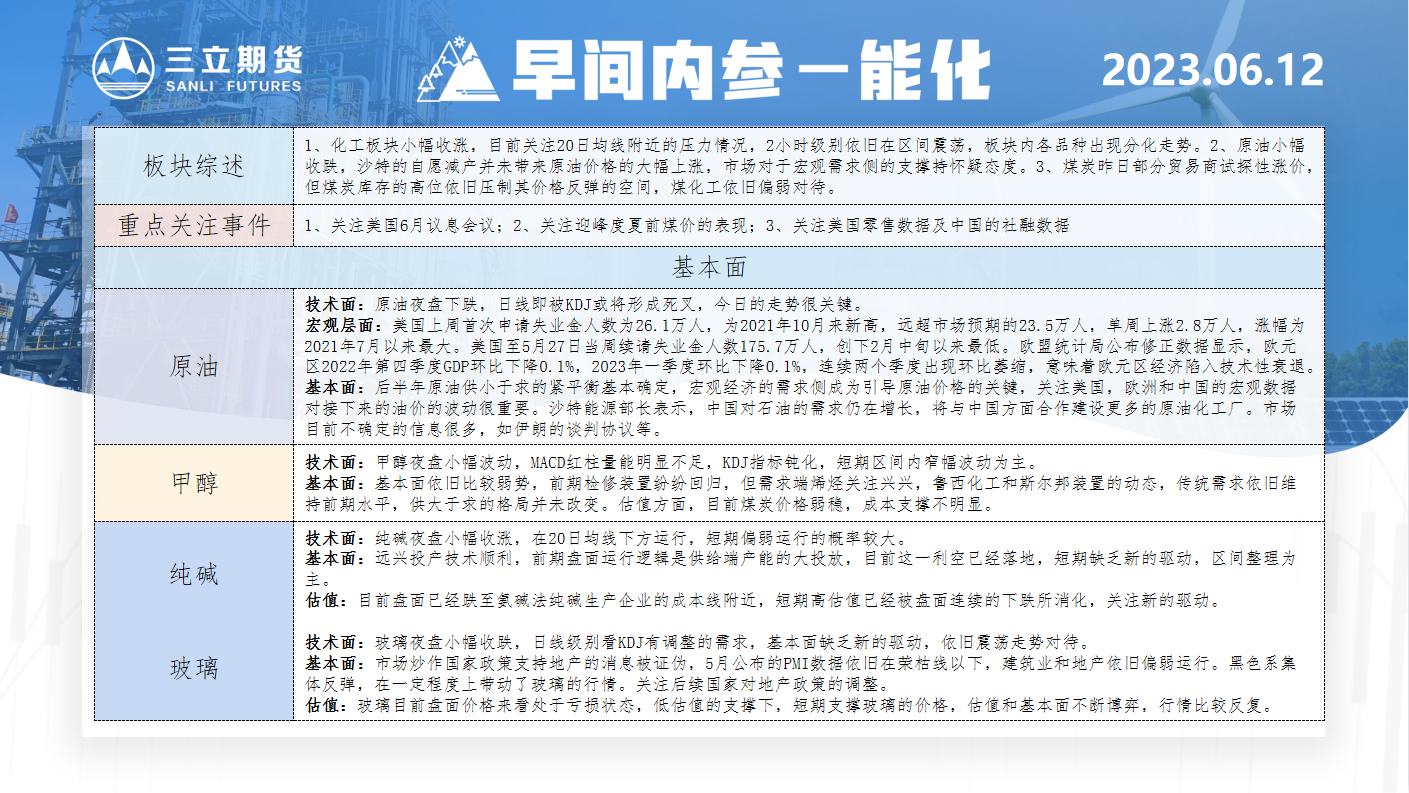 汇通财经APP讯——三立期货早间内参显示,后半年原油供小于求的紧平衡基本确定,宏观经济的需求侧成为引导原油价格的关键,关注美国、欧洲和中国的宏观数据对接下来的油价的波动很重要。甲醇夜盘小幅波动,MACD红柱量能明显不足,KDJ指标钝化,短期区间内窄幅波动为主。纯碱夜盘小幅收涨,在20日均线下方运行,短期偏弱运行的概率较大。