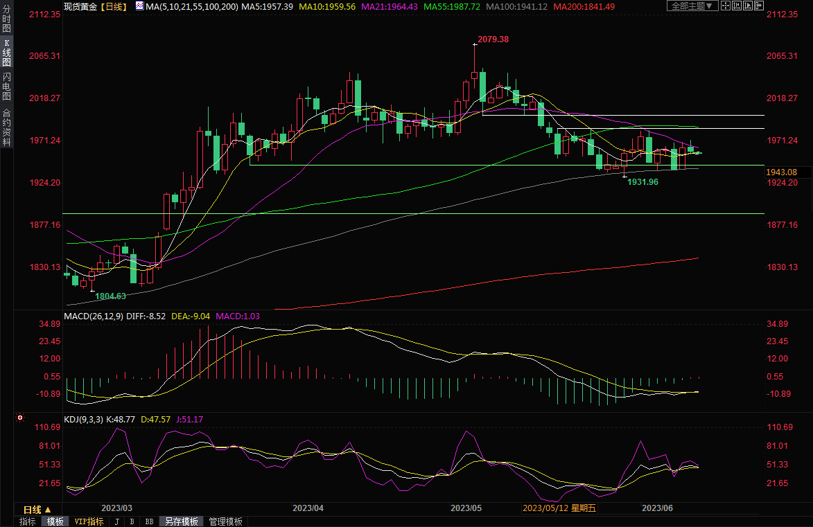 汇通财经APP讯——周一(6月12日)亚市盘初,现货黄金窄幅震荡,目前交投于1958.5美元/盎司附近。上周五金价震荡微跌,因美元反弹和美债收益率上升,不过,因接下来的一周将迎来一系列重磅经济数据和风险事件,市场观望情绪渐浓,金价整体振幅明显缩窄。