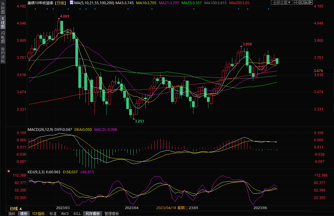 标普500指数和纳指创2022年4月以来的最高收盘水平,这略微打压避险情绪,降低黄金的吸引力,但这也暗示市场普遍预期美联储本周将暂停加息,黄金多头也拥有一定的机会。