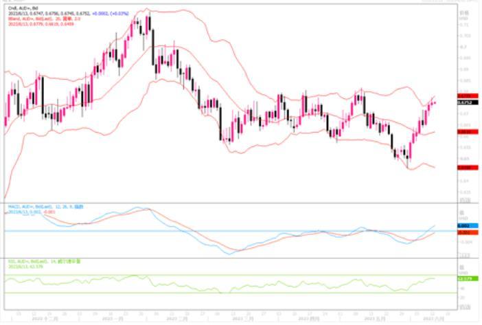 周一(6月12日)继上周大幅上升后,本周一澳元兑美元继续微涨0.16%,收盘于0.6751水平。澳元兑美元近期的强力回升,一方面是因为美联储6月份加息预期降温持续兑汇价构成支撑,另一方面澳联储日前意味加息25个基点并暗示进一步加息也是支撑澳元持续反弹的重要因素。此外大宗商品铁矿石价格持续高位运行也给到澳元较大的支持。从技术角度上看,澳元/美元从支撑区域向阻力区域移动,即将触及阻力位0.6819。考虑到本轮上涨结构及其流畅,本周突破阻力位的概率似乎显得较高。4小时图上显示,短线有超买痕迹,需要防范短线获利回落调整的风险。若本周美联储跳过加息,预料经过短线调整后的澳元将会获得更好的上升空间。