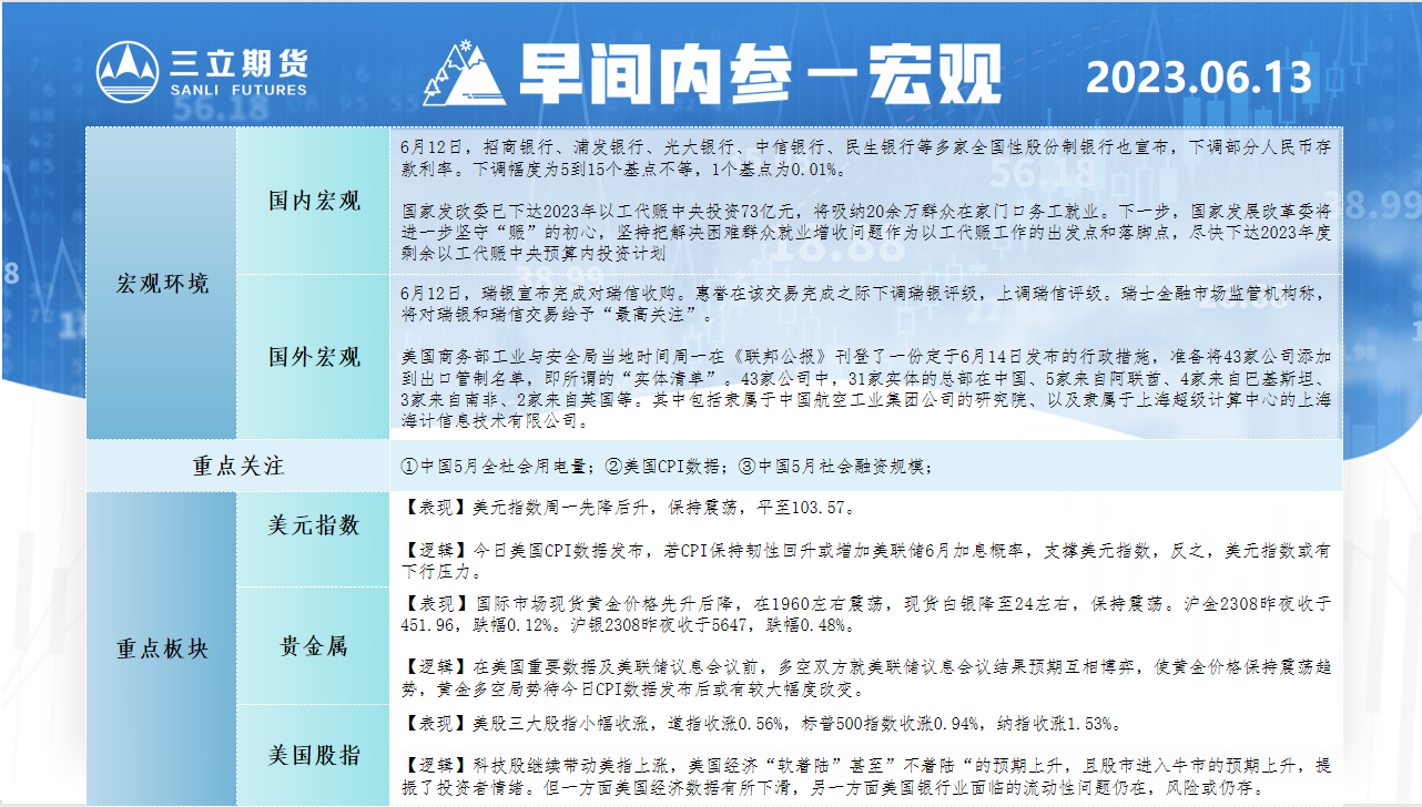 标题:三立期货6月13日早间内参——宏观