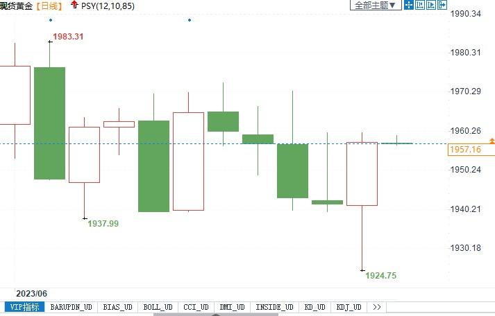 汇通财经APP讯——6月16日(周五)亚洲时段,现货黄金微涨,目前交投于1958.05美元附近。周四现货黄金一度跌至1924.75美元,随后有所回升,最后收涨0.83%,报1957.81美元/盎司。