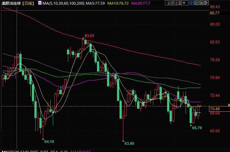 美原油现报70.50美元/桶。