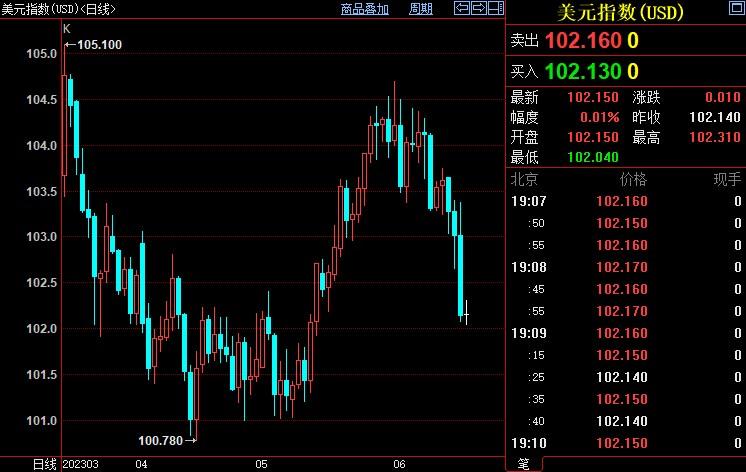 截至发稿,现货黄金上涨0.24%至1965.05美元/盎司;美元指数下跌1.33%至102.165;欧元兑美元上涨1.89%至1.0952。
