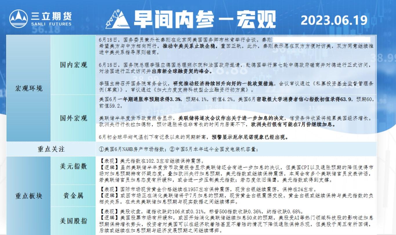 汇通财经APP讯——三立期货早间内参显示,虽然美联储半年度货币政策报告显示美联储还会有进一步加息的决议,但美国CPI以及通胀预期的降低使得市场对加息预期持有怀疑态度,叠加欧洲央行加息预期,美元指数或继续保持震荡,本周会有多个美联储官员发表进话,若美联储官员加息态度有所缓和,或会进一步压制美元指数;若态度依旧偏鹰,美元指数或得到支撑。