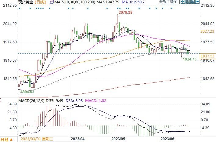 北京时间6月21日10:30,现货黄金报1937.53美元/盎司