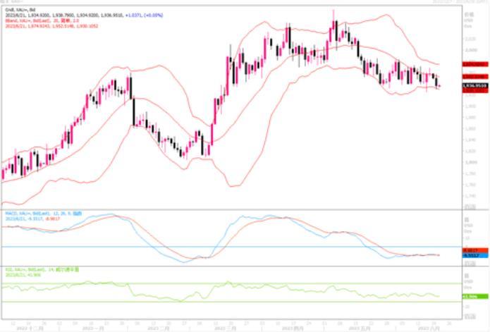 技术层面上,现货黄金价格仍处在横盘震荡区间内,但走势处在布林带中轨线之下,暂时未能解除近期偏向下行的风险。若横盘区间下方的强支撑水平1930破位,则下滑的目标看向1900心里关口,进一步下滑看向1850美元。而当前横盘震荡区间的上方1970-1980美元区域似乎阻力较强,多头攻破之的欲望不强。