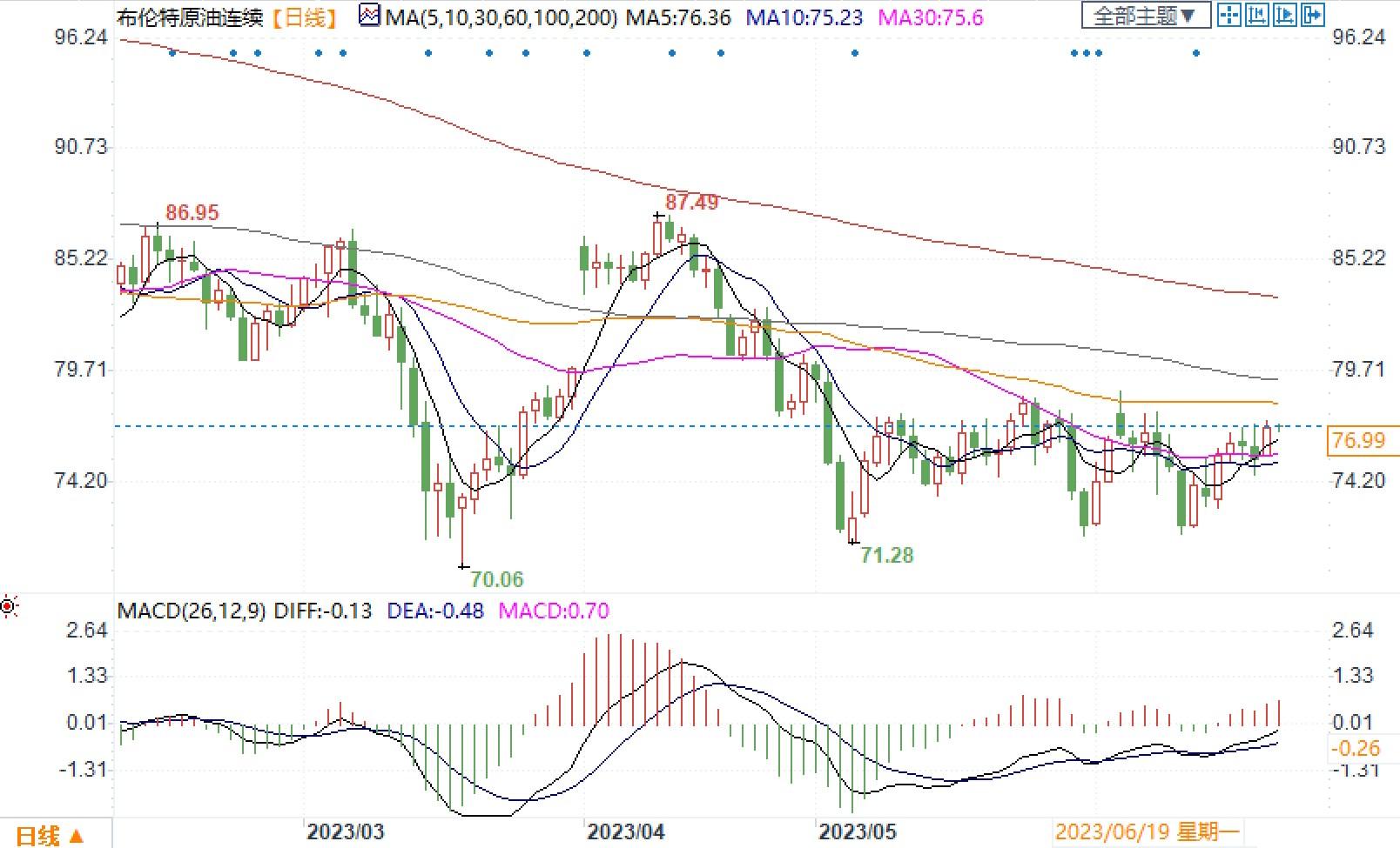 北京时间6月22日15:07 布伦特原油连续 报 76.99 美元/桶